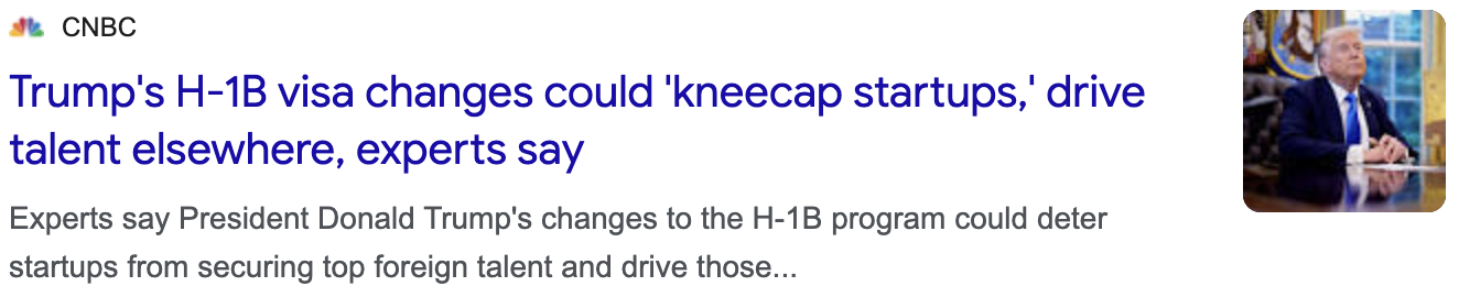 "Trump's H-1B visa changes could 'kneecap startups,' drive talent elsewhere, experts say"