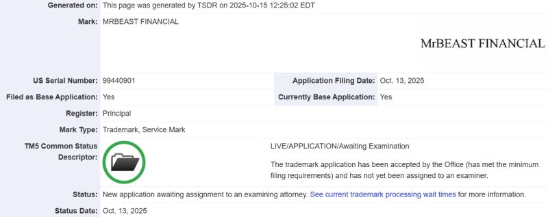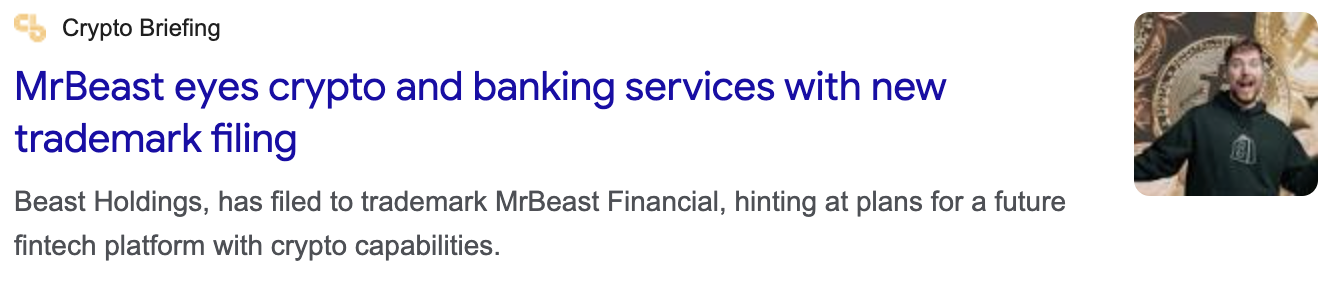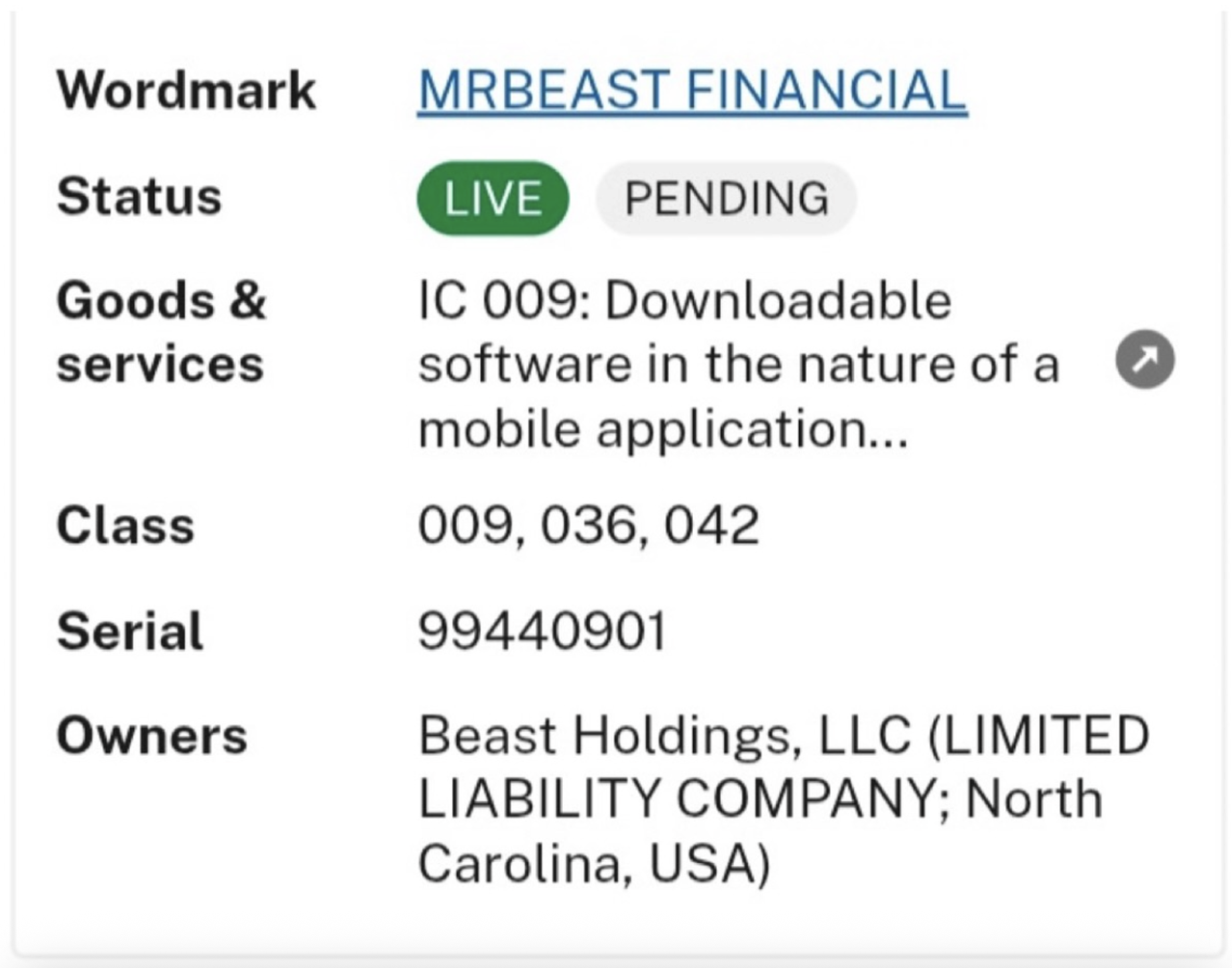 "MrBeast eyes crypto and banking services with new trademark filing"