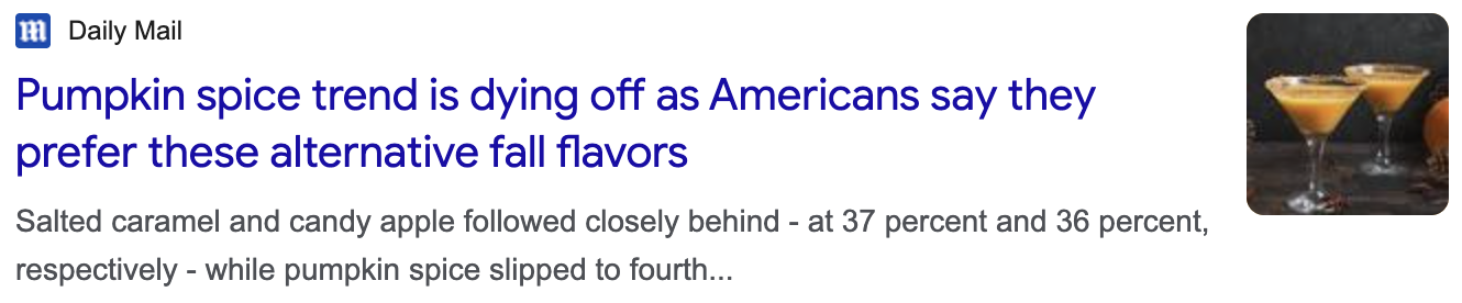 "Pumpkin spice trend is dying off as Americans say they prefer these alternative fall flavors"