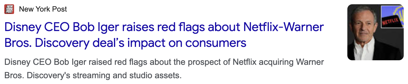 "Disney CEO Bob Iger raises red flags about Netflix-Warner Bros. Discovery dealโs impact on consumers"