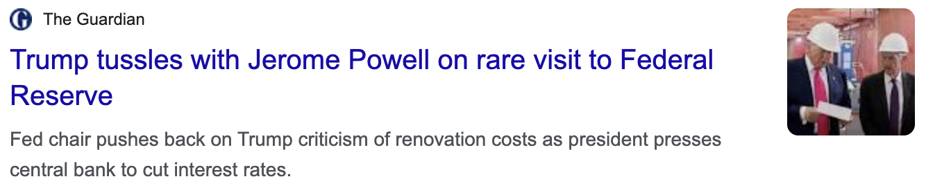 "Trump tussles with Jerome Powell on rare visit to Federal Reserve"