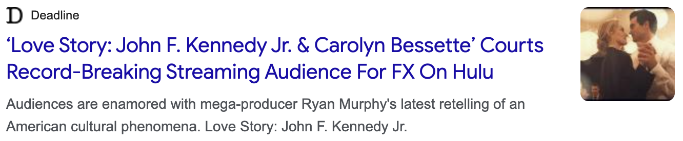 โLove Story: John F. Kennedy Jr. & Carolyn Bessetteโ Courts Record-Breaking Streaming Audience For FX On Hulu