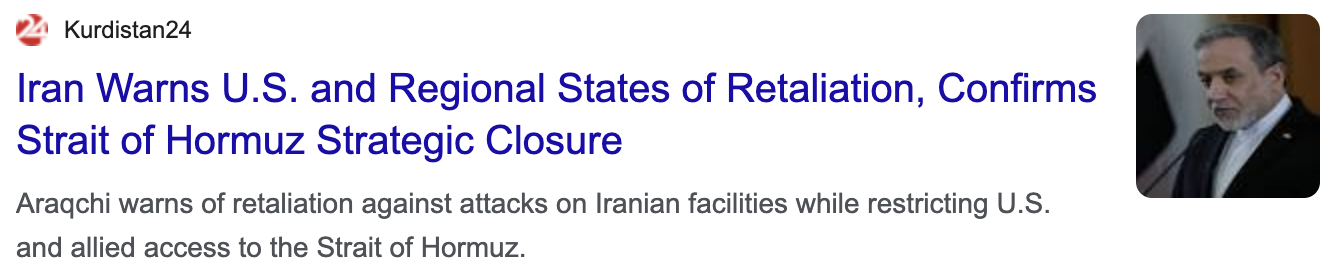 Iran Warns U.S. and Regional States of Retaliation, Confirms Strait of Hormuz Strategic Closure