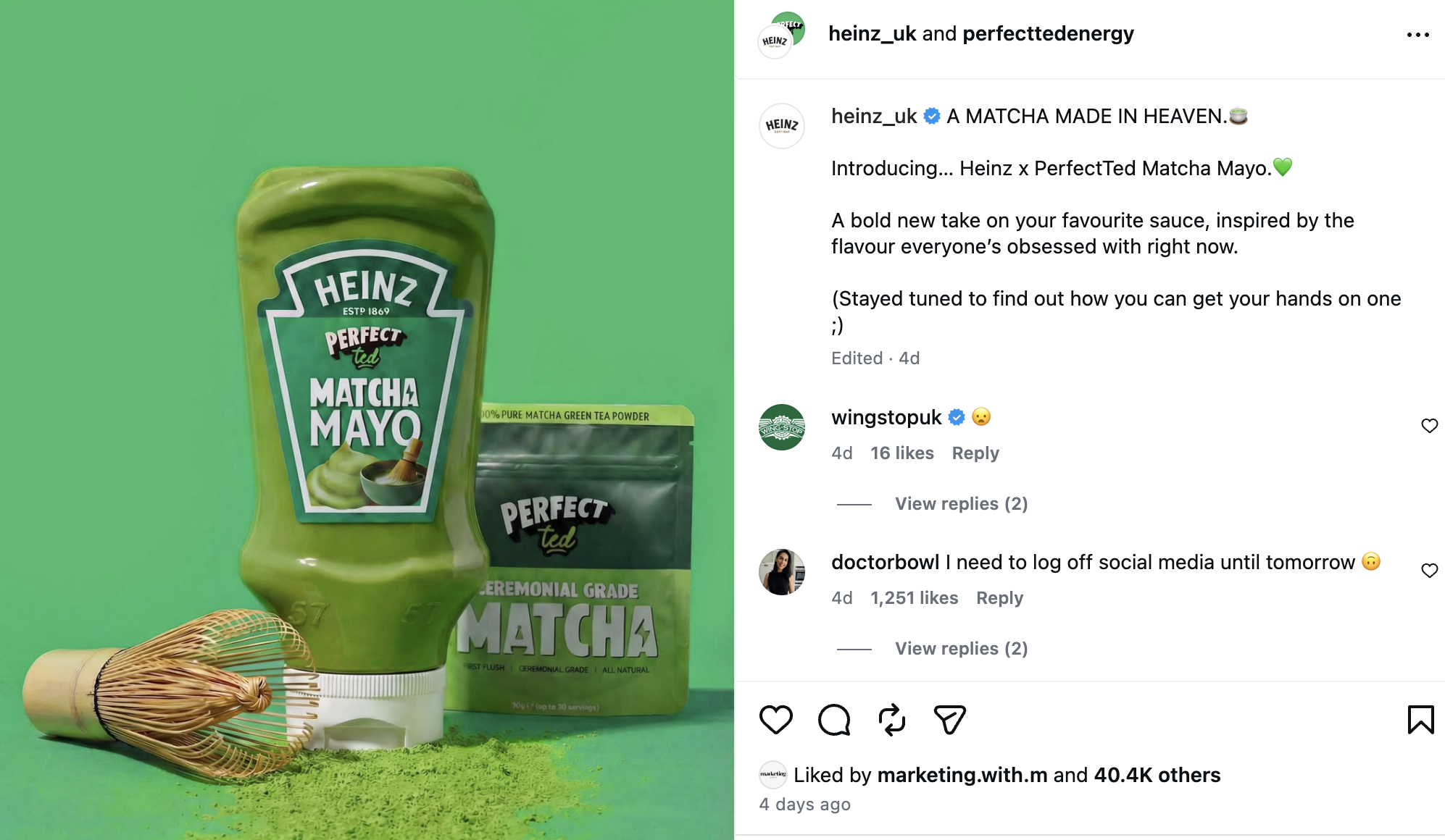 ํ ๋ฏธ๊ตญ ์์ค ๋ธ๋๋ ํ์ธ์ธ (Heinz)๋ ๋ง์ฐจ ๋ธ๋๋ PerfectTed๋ ์์ก๊ณ ๋ง์ฐจ๋ง์ ์์ค๋ฅผ ๊ณต๊ฐํ์ด์. ๋ง์๋ค์ฆ์ ๋ง์ฐจ ์กฐํฉ... ์ด์ง ๋นํฉ์ค๋ฌ์ด ์กฐํฉ์ด๊ธด ํ๋ฐ ๋ง์ฐจ๊ฐ ์๋ ํด์ธ์์ ์ธ๊ธฐ๋ฅผ ๋๊ณ ์๋ค๋ณด๋ ์๊ฐ๋ณด๋ค ์๋น์๋ค์ ๋ฐ์์ด ๊ธ์ ์ ์ด๋ผ๊ณ . |